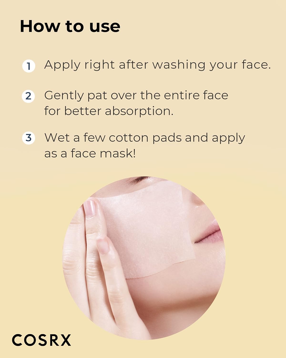 Aplică tonerul pe tenul curat, după cleanser, folosind palmele sau o dischetă de bumbac.