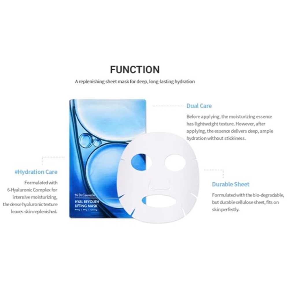 Masca HYAL REYOUTH Lifting Mask este un tratament intensiv pentru fermirea și revitalizarea tenului obosit sau lipsit de elasticitate. Formula sa concentrată cu acid hialuronic și peptide ajută la hidratatea profundă, netezirea liniilor fine și redarea fermității pielii. Textura sub formă de sheet mask se aplică ușor și se mulează perfect pe conturul feței, oferind un efect instant de revitalizare și lifting.